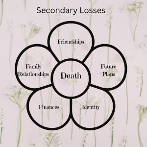 Grief is complicated because it is not only the death of the person you love but also the secondary losses that come with death. Nothing prepares you for the excruciating pain that accompanies death. However, it’s the unexpected secondary losses that nobody really talks about. They include changes to finances, friendships, family relationships, identity, and the future that you thought you had.